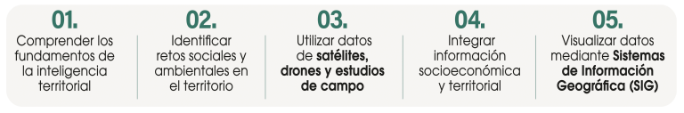 Esta formación permitirá a los participantes conocer cómo la inteligencia territorial se convierte en una herramienta clave para abordar desafíos sociales y ambientales a través de la integración de información geográfica, datos socioeconómicos y conocimiento local.